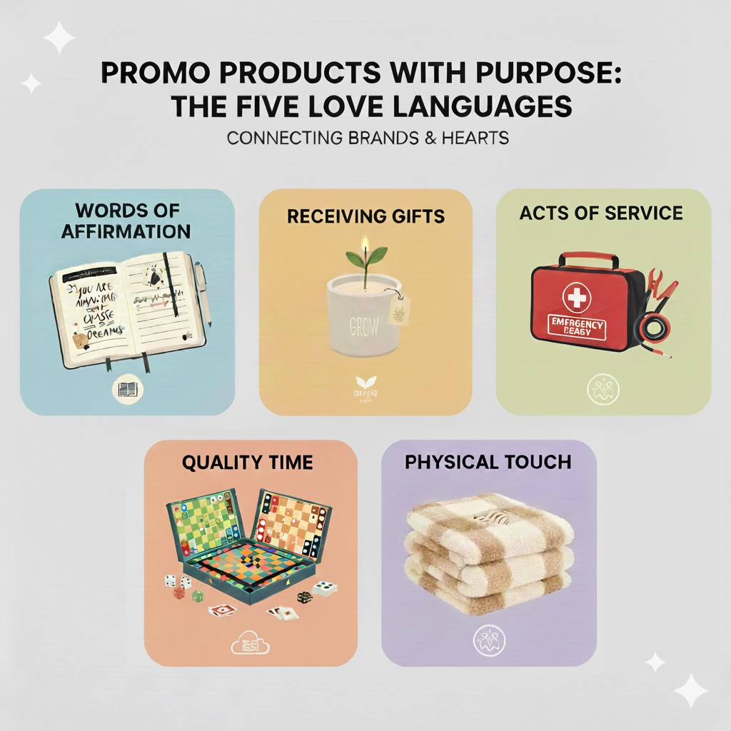 Understanding love languages allows brands to connect with recipients in meaningful ways. When promotional products align with how people feel appreciated emotionally, these items become more than branded swag. They become tools of connection, support, and remembrance. Custom notebooks speak to encouragement. Branded service gear shows care through action. Thoughtful gifts delight and affirm intention. Shared game sets foster presence and interaction. Cozy blankets communicate warmth and comfort. Choosing promotional products that resonate with love languages transforms marketing into meaningful human connection. Your brand becomes part of people’s lived experiences in ways that matter.