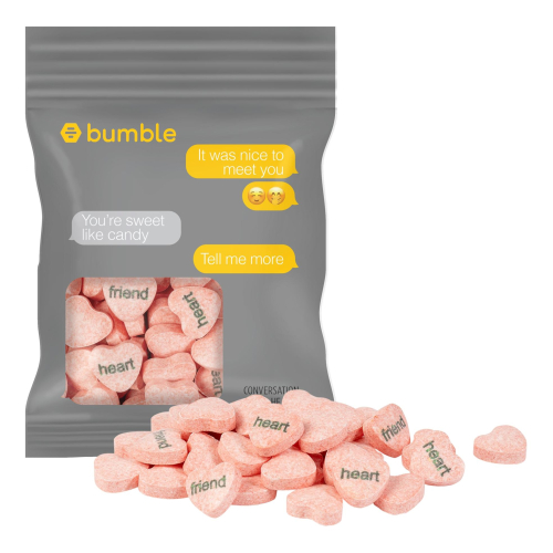 2 oz Full Color Printed Candy Bag: Imprinted Conversation Hearts