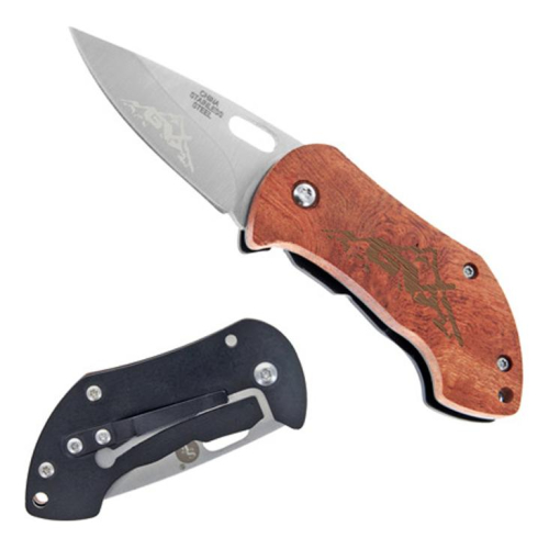 Compact Liner Lock Pocket Knife with Plated Wood Handle