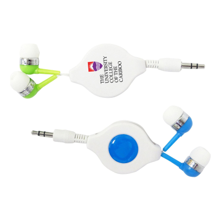 Promotional Retractable Earbuds and other Customized Earbuds with no setup fees (see VIP details). Branded Retractable Earbuds can be decorated with your logo for displaying without paying for setups (for VIP customers).