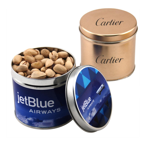 Promotional Round Tin with Pistachios is available for customized your business logo on any of our thousands of promotional items. Enjoy advertising handouts like the Custom Round Tin with Pistachios and other Customized Candies with free setups (see our VIP Program).