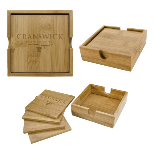 Square Bamboo Coaster Set - Laser Engraved