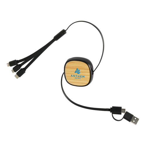 Bamboo Retractable 3-in-1 Charging Cable with Dual Inputs