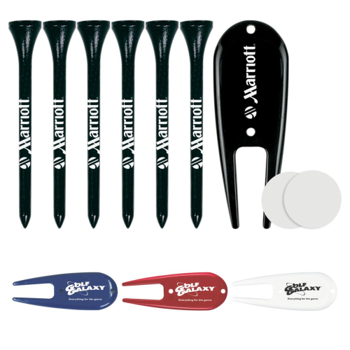 Golf Tournament Kit: 6 Tall Golf Tees, Divot Tool, Ball Marker