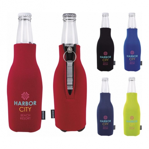 Customized Koozie Zip-Up Bottle Kooler with Opener with Full Color and other Branded Bottle Sleeves with free setups (see our VIP Program). Promotional Koozie Zip-Up Bottle Kooler with Opener with Full Color can be customized with your company logo for advertising w...