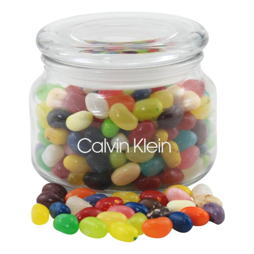 Promotional Patio Glass Jar with Jelly Belly and other Customized Candies without paying for setups (for VIP customers). Custom Patio Glass Jar with Jelly Belly can be customized with your logo for marketing with customization included.