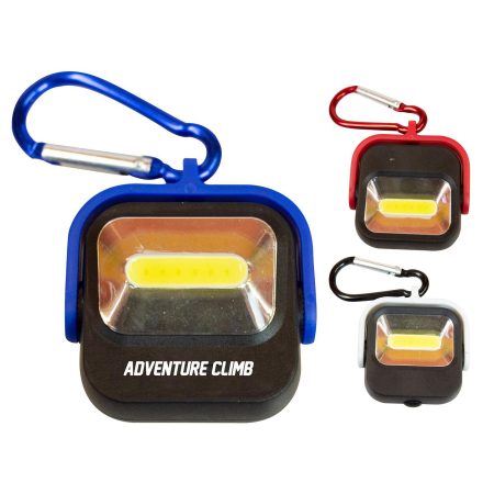 Promotional Carabiner Cob Light With Cover and other Branded Flashlight Keychains with no setup fees (see VIP details). Customized Carabiner Cob Light With Cover can be customized with your company logo for marketing with customization included.