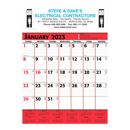 Promotional Commercial Planner Wall Calendar - Red & Black is available for printed your business logo on any of our thousands of promotional items. Enjoy promotional products like the Customized Commercial Planner Wall Calendar - Red & Black and other Custom Calend...