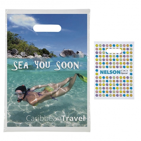 Full Color Plastic Bags with Die Cut Handle 9x13 - Product Info