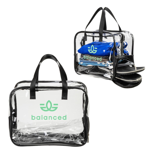 Gem Clear PVC Zippered Bag with Easy-Access Shoe Compartment