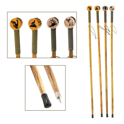 Rustic Wooden Hiking Stick with Rope Grip & Detailed Animal Design Top