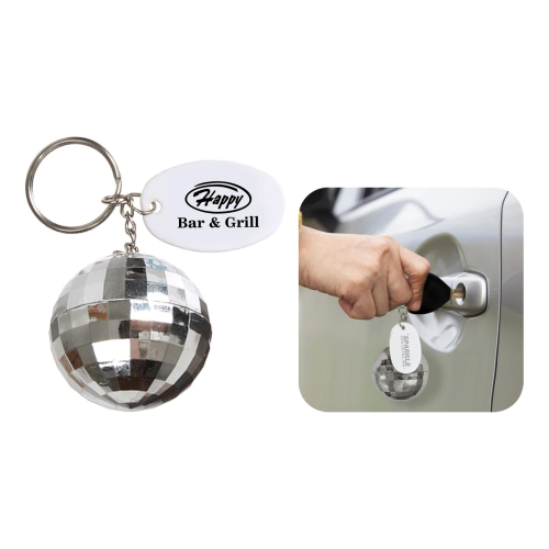 Silver Disco Ball Shaped Plastic Keychain